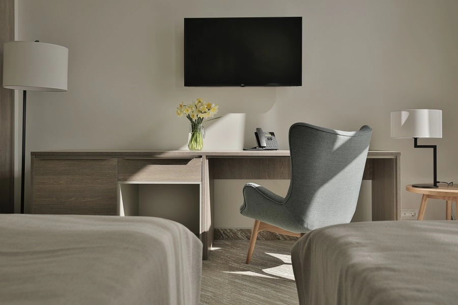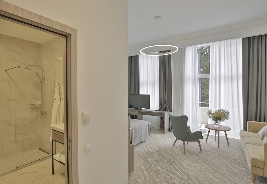 Площадь номера - 30 кв.м. 2 осн. места. 1 доп. место. Балкон. Мебель: вешалка, зеркало, кровати односпальные /одна двуспальная кровать, прикроватные тумбочки, стол, стул, шкаф. Оборудование: гладильная доска, кондиционер, мини-холодильник, сейф, телевизор, телефон, утюг, чайная станция. Санузел: с душевой кабиной, тапочки, туалетные принадлежности, фен, халат. Сервис: Wi-Fi бесплатно, смена полотенец, смена постельного белья, уборка номера.